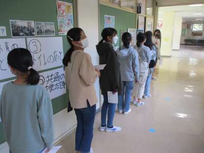 保健室では、明日から始まる6年生の日光林間学園の事前検診が行われていました。みんな廊下に静かに並んで、自分の順番を待っていました。明日からの日光林間学年が楽しみですね。