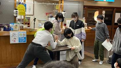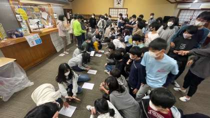 数秒しか見せてもらえない絵を再現したり、イントロクイズがあったり、班から代表を出して、班対抗で戦いました。