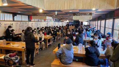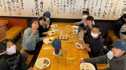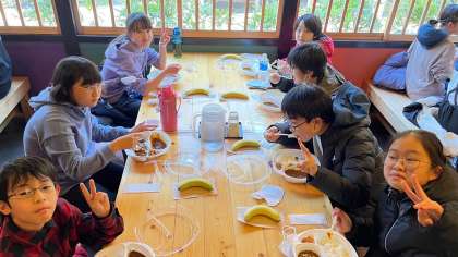 お昼の時間になりました。カレーライスとバナナを食べて、バスの出発時間までもう少し遊びに行きました。