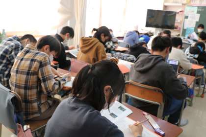 シーンと静まり返った6年生の教室です。3日間の振り返りを書いています。がんばったこと、感じたこと、経験したこと。それぞれ違う色々なことを書きこんでいました。