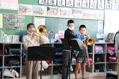 砧の伝統を受け継ぐ…と言葉で言うのは簡単ですが、こうやって引継ぎ式の後も手とり足とり5年生に指導してくれる6年生、緑化祭りや、砧っ子夏祭りでの演奏を聴きに来てくれる卒業生、この姿がまさに伝統が受け継がれいていく姿なのです。