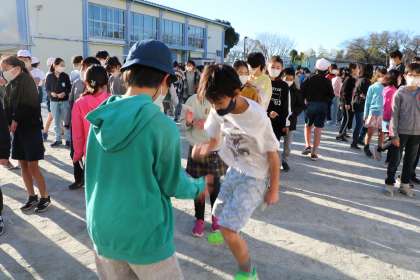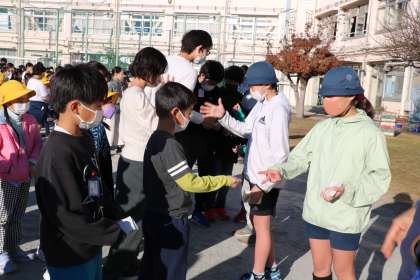 ジャンケンに必死で取り組んでいます。「じゃんけんぽん」と、跳びあがる子もいるくらいです。