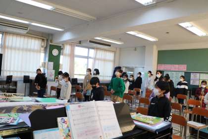 音楽室では、最後、先生に礼、教えてくれた6年生にも礼をして終わります。