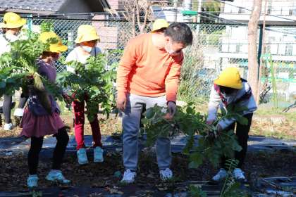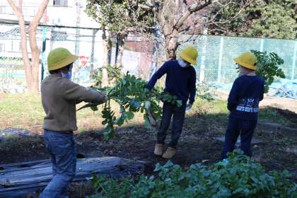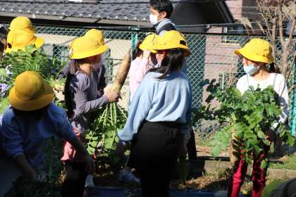 1年生も収穫しました。子供たちが育てた大根です。どんなお料理に変身するでしょうか。一緒に楽しんでいただけるとありがたいです。