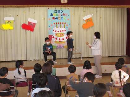 歌う会の皆さんのハンドベルの演奏を聴きながら、リズムに合わせて体を動かしたり、知っている曲を口ずさんだりする姿も見られました。子どもたちが楽しみにしているクリスマスは、もうすぐですね。