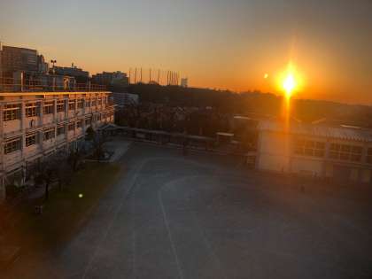 新年を迎え、学校の屋上から見える日の出が一段と美しく思えます。