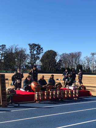 元旦歩こう会では石井戸囃子の皆様の生演奏が、大藏総合運動場に鳴り響いていました。