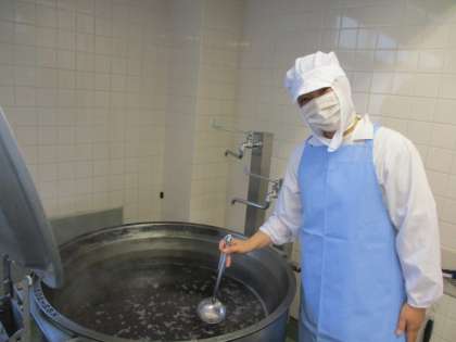 3学期の給食が始まりました。こどもたちは給食が始まるのを楽しみにしてくれていました。今学期もこどもたちのために栄養満点でおいしい給食を作っていきたいと思います。今日の給食は鏡開きこんだてです。鏡開きは1月11日でしたが、給食がなかったため今日にしました。給食室で小豆をことこととにて、おしるこを作りました。写真はおしるこのあくをとっているところです。給食ではおもちのかわりに白玉だんごを使用しています。