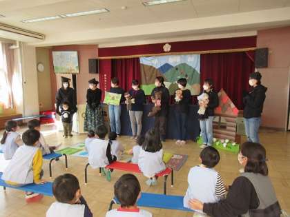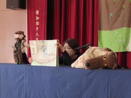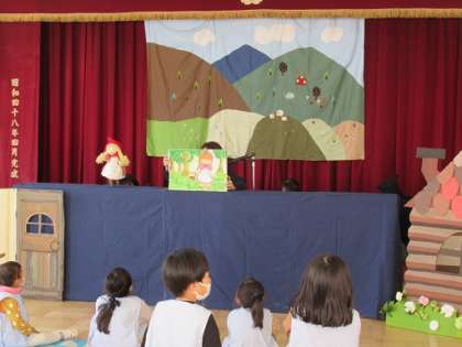 今日は人形劇の会の皆さんによるおはなし会でした。演目は「赤ずきんちゃん」です。