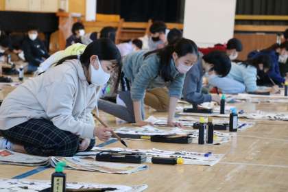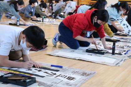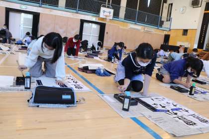 心を落ち着け一画一画丁寧に筆を進めていました。真剣な眼差しに、緊張感が伝わってきました。