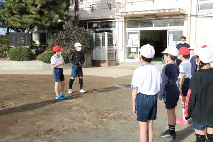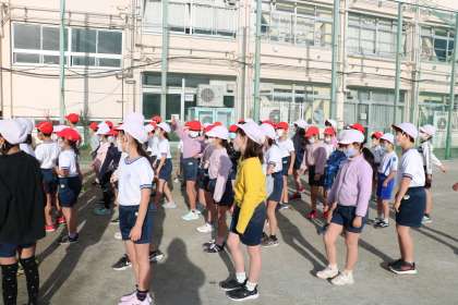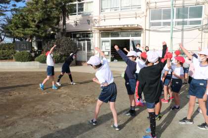はじめは3年生です。開会式の司会進行、始めの言葉、準備運動など子供たちの力で進めています。全員で「寒さに負けず がんばるぞ!おー!!」と声を出し始まりました。