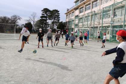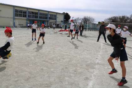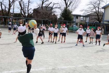 「思い切り楽しもう!!」が今日のドッジボール大会のめあてだという5年生。互いのチームのよいプレーに感動したり、声援を送ったりしながら、本当に楽しそうです。