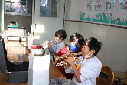 今朝も5年生が鼓笛の朝練習を頑張っています。6年生もいっしょに教えてくれています。技術だけでなく、朝練習の時にどうやって練習するといいのかやり方もしっかり教えてくれます。