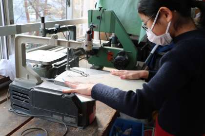 ベニヤ板と木切で3Dの世界を制作するのだそうです。どのような作品になるか楽しみです。