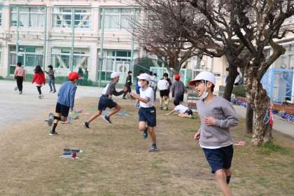 休み時間元気に外遊びをする姿が見られました。写真は4・5・6年生の中休みです。