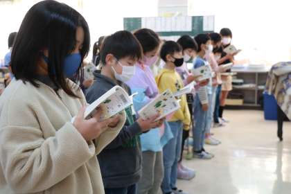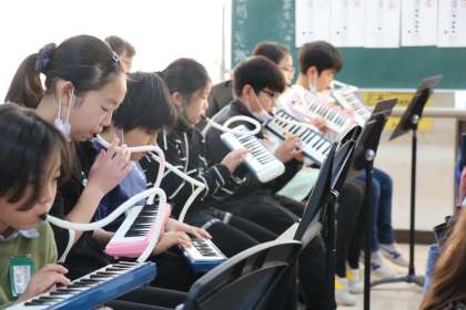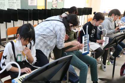 4年生音楽の様子です。始めの全員合唱。今日のリクエストは「君をのせて」です。歌の本を見ながら、みんなで声を合わせました。そのあと、鍵盤で「茶色のこびん」を練習です。「指のお引っ越しが必要です」と先生の説明に合わせて練習すると・・・「あれ?!指を変える方が弾きやすい!」という声が上がります。