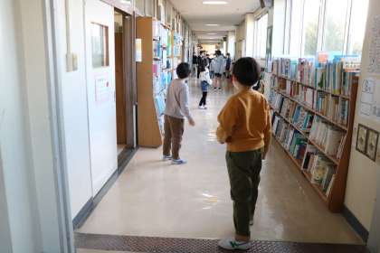 長い廊下で「だるまさんがころんだ」や、教室で「ハンカチ落とし」「震源地」等を楽しんでいます