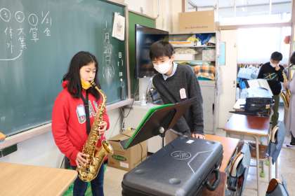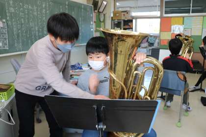 どの楽器も真剣に教えてもらっています。