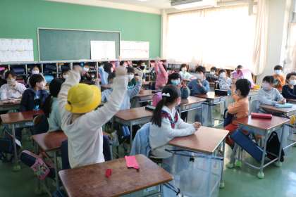 正解が発表されると大喜びだったり、がっかりだったり。クイズ集会に楽しそうに参加している様子です。