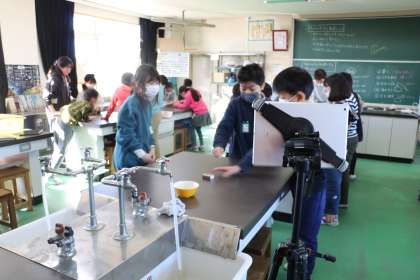4年生理科の様子です。今日はアルコールランプを使います。その前に全員、マッチの擦り方です。しっかり先生の話を聞いてから実際にやってみるので危険はないのですが、子どもたちはドキドキです。