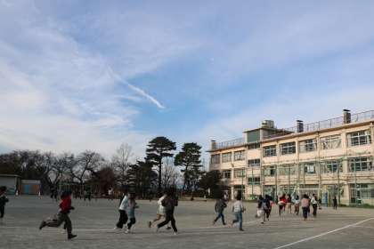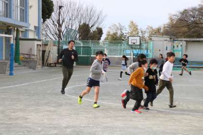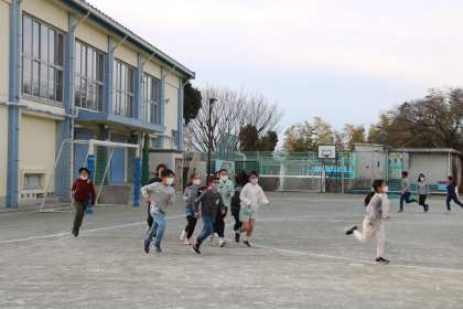 金曜日から中休み、昼休みの遊びは校庭1学年、体育館1学級で順番に使っています。ランランランも1学年で走ります。