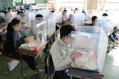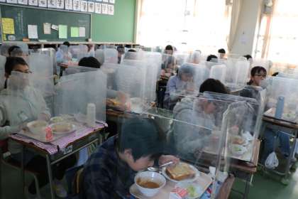 いつ見に行っても、どのクラスも、黙食が徹底されています。そして感染症対策の一環として、増やしたり減らしたりするのは最初だけです。食べた器をもって室内を移動することはしばらくしません。