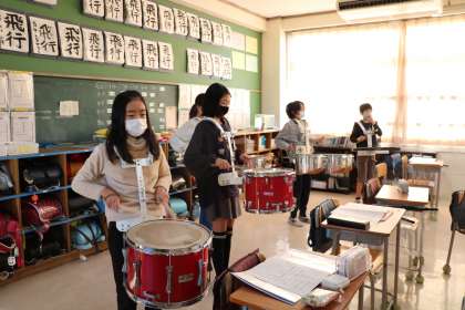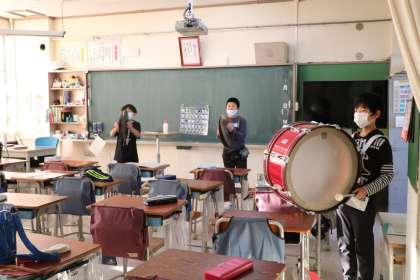 今朝も5年生鼓笛の朝練習です。複数の部屋を使い、密にならないように気を付けながら練習をしています。