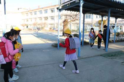 1年生の元気な声に、1年生はもちろん、お兄さんお姉さんも大きな声であいさつを交わしてくれます。