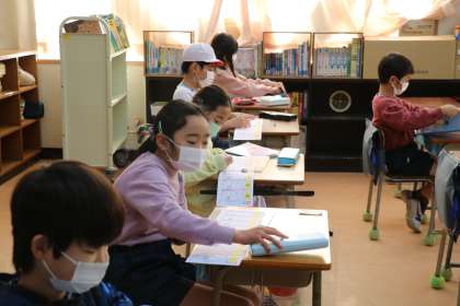 3年生の朝学習の様子です。3年生は国語の学習です。