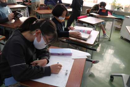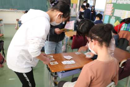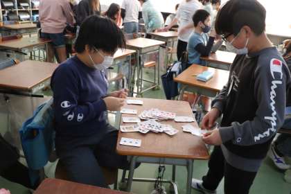 今日の昼休みは校庭が6年生、体育館が4年生1学級の割り当てになっていました。教室ではどのように過ごしているのか見に行きました。4年生の様子です。