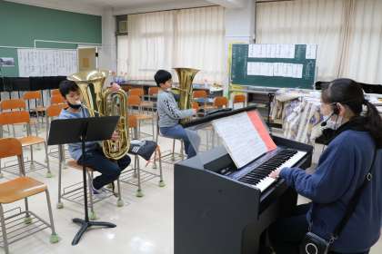 練習する向き、1つの教室の人数制限、換気をする等感染対策を徹底しながら練習を継続しています。
