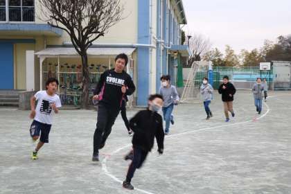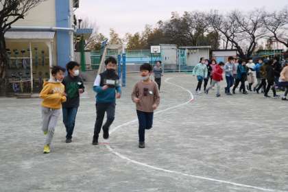 朝のランランランは4年生です。持久走大会のコースを走る子もいます。