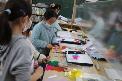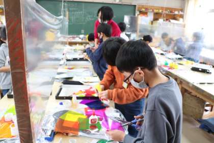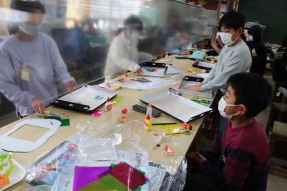 3年生図工「光サンドイッチ」という作品作りの様子です。
