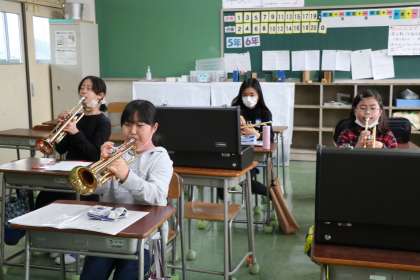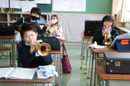 5年生は練習中の教室を増やし人数を制限したり、向きを工夫して演奏したり、もちろん換気を十分にしたりしながら練習を続けてきましたが、来週からは更に感染症対策を強め、人数を減らし学級単位での朝練習といたします。3日に1回の練習となり、多教室を使っての練習ですので、1教室に一人で練習する楽器も出てくるかと思いますが、今までの成果を下げることなく、練習を継続できるよう応援します。ご理解とご協力をお願いいたします。