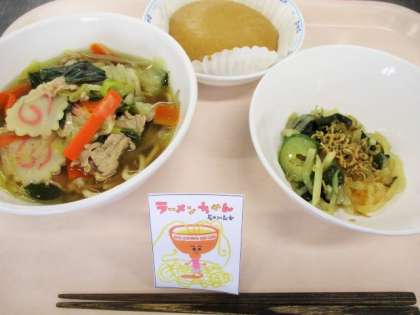 毎日こどもたちが楽しみにしてくれていたお話給食も今日が最終日です。今日は「らーめんちゃん」という絵本をイメージした給食です。鶏がらからスープをとり、野菜もたっぷり入った給食のラーメンは人気メニューです。今日はしょうゆ味のラーメンにしました。