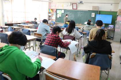 6年生の様子です。どの教室も人数が少ないですがみんな集中して学習に取り組んでいます。なかでも6年生はいつ教室に行っても、しっかりやるべきことに取り組んでいます。タブレットの向こうで自宅から授業に参加している子も同じでしょう。