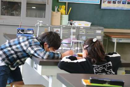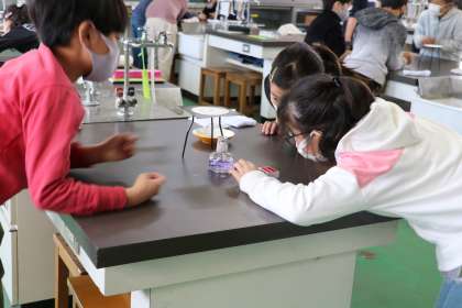 次はアルコールランプです。オンライン学習の友達も画面越しにしっかり見て、勉強できましたか?