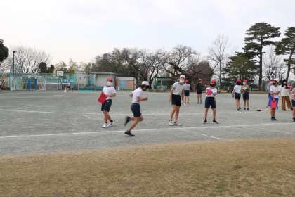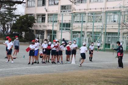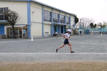 6年生体育、持久走の様子です。記録する子が大きな声でかける言葉が具体的でわかりやすいです。走っているその子のペースを伝えたり、前回の記録と照らし合わせてアドバイスしたり、走っている子の力になります。さすが6年生です。