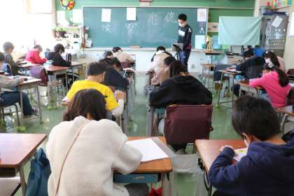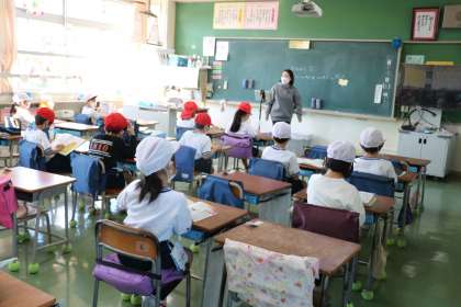 砧小学校では、火・水・木曜日は朝学習などの時間です。1・2年生は朝読書、朝学習、3・4年生は国語、5・6年生は外国語です。15分×3回で1時間の授業としてカウントしています。