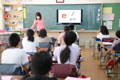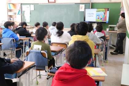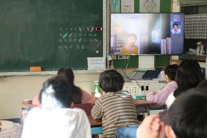 朝学習、5・6年生外国語の様子です。動画を見ながら学習しています。動画は10分程度にまとめられている世田谷区共通の動画教材です。繰り返し聞いたり言ったりしながら英語に親しんでいます。
