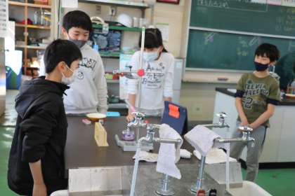 熱で色が変わる試薬を使い、温まり方を目で見て確認します。