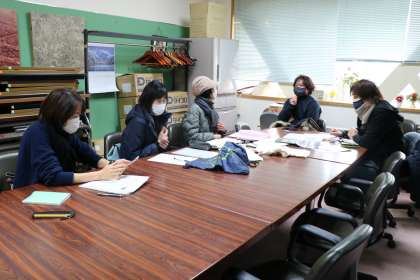 今日は記念Tシャツやバンダナ、スカーフなどどんなものを作ろうか相談しています。デザインが少しづつ固まってきました。