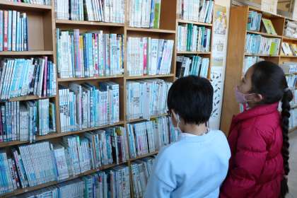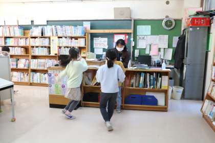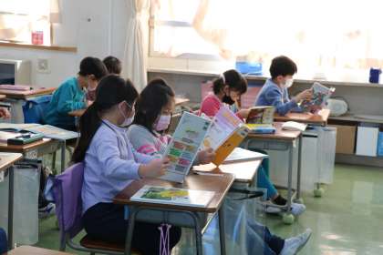 1年生「図書」の様子です。図書室でゆっくり本を選び、教室で読みます。