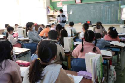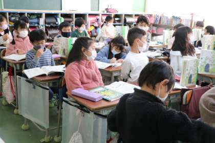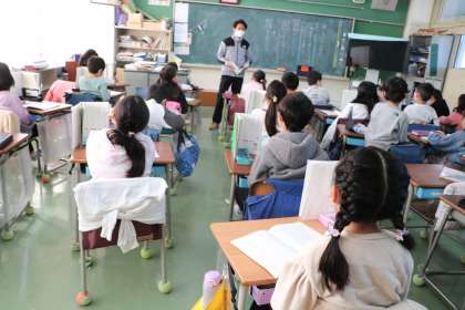 2年生国語「楽しかったよ、2年生」の学習です。この1年間を振り返り、身近なことや経験したことなどから話題を決め、発表する学習です。話す事柄の順序を考えながら、伝えたい事柄や相手に応じて、声の大きさや速さ、視線などを工夫できるようにします。