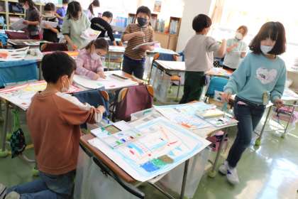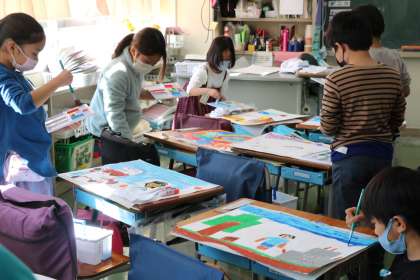 空を飛べたら、チョコレートのカプセルに入ったら・・・子どもたちの絵に込めた思いを聞くのが楽しいです。