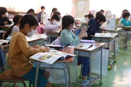 聞き惚れている子、感じたことをメモしながら聞いている子、みんな一生懸命鑑賞しています。