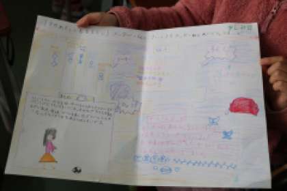 あえて苦手を克服したことについてや、自分の得意なことベスト3など、内容も個性あふれるものばかりです。私が授業の様子を見ていると、一生懸命自分の作品について説明してくれるのが可愛いです。