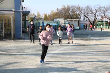 朝のランランランは3年生です。木曜日の持久走大会に向けて、はりきっています。