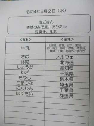 さばのみそ煮は給食室の大きな釜でコトコト時間をかけて、ゆっくり煮ました。しょうがとネギでくさみもなく、とってもおいしいさばのみそ煮ができました。