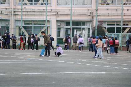 朝は学年問わず外遊びができるとあり、したくを済ませた子たちが外に出て遊んでいます。